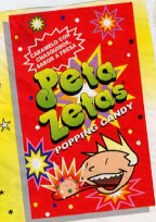 Otros polvos o gránulos que nos ofrecían emoción extrema, eran los Peta Zetas, que estallaban en la boca cuando entraban en contacto con nuestra saliva. Podías sentir cómo crepitaban en tu boca, que era uno de los alicientes de esta golosina. Aquí una muestra del envase actual y del antiguo, donde aparecía un astronauta y las estrellas (que eran una alegoría a los meteorismos que provocaban los gránulos).