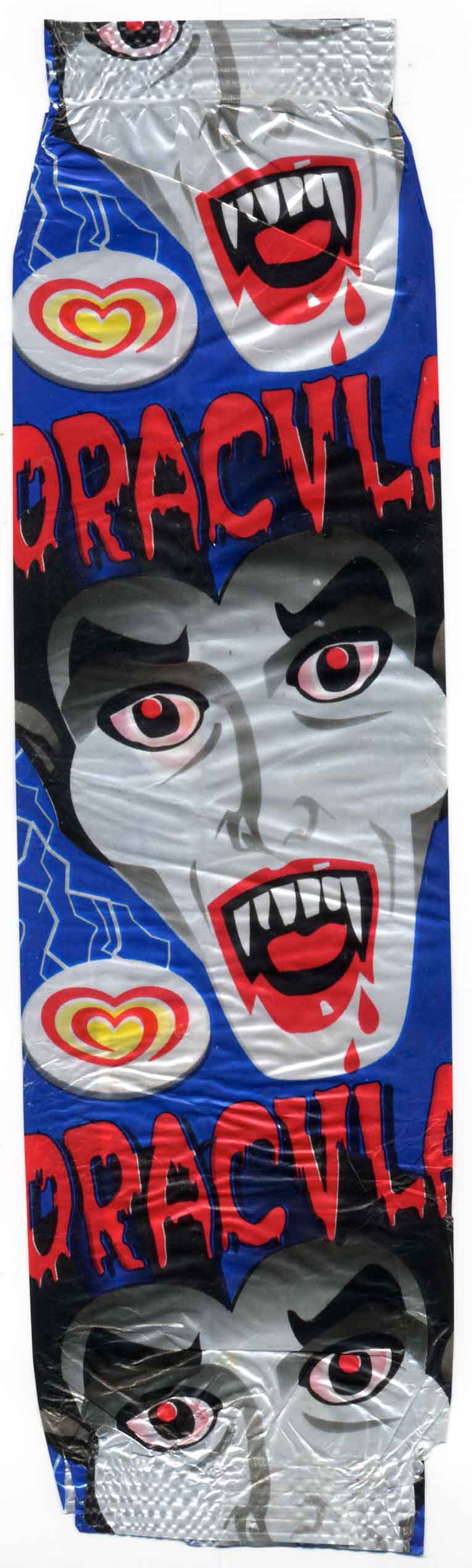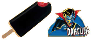 Los polos de Drácula, gran mito heladero, recubiertos de helado de hielo coca-cola y con un interior semi cremoso de fresa o vete a saber, pero sabía bastante bien y no puedo recordar si era exactamente fresa, sandía o una mezcla rara demoníaca.
