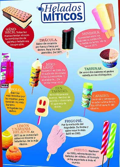 Helados en la década de los 70, 80 y 90 respectivamente.