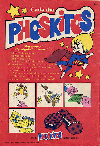 Otros bollos, los Phoskitos, recubiertos de chocolate, siempre llevaban regalitos que incitaban a comprarlo, como figuras o cromos.