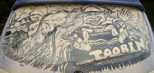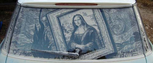 Pero Scott Wade, lejos de considerar un coche sucio un lugar donde escribir algún insulto, lo que hace es crear obras de arte como estas de aquí abajo. Usa el dedo, pinceles o gomas para poder dibujar sobre estos coches guarretes y convertirlos en piezas de museo.