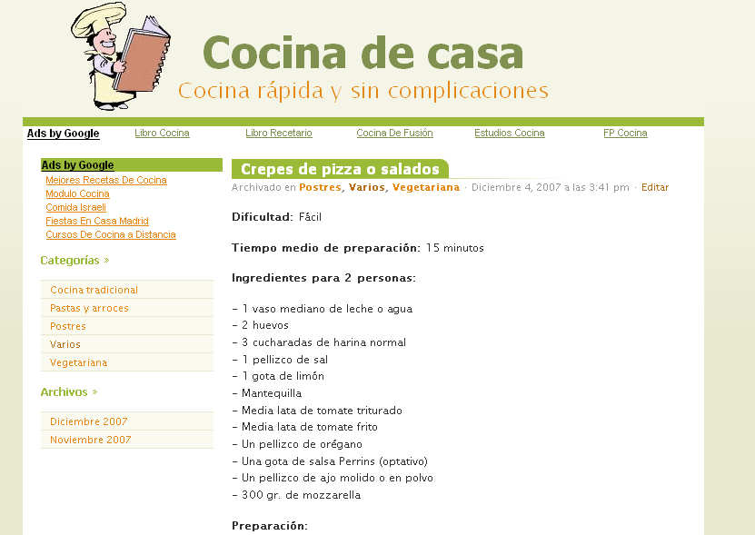 Os voy a presentar un nuevo blog de cocina de un amigo, que espero que lo visitéis asiduamente: Cocina de casa (http://cocinadecasa.com/). He colocado incluso en la barra lateral, un panel donde iré rotando algunas recetas que se vayan añadiendo, por si la veis y os interesa ese plato en concreto.