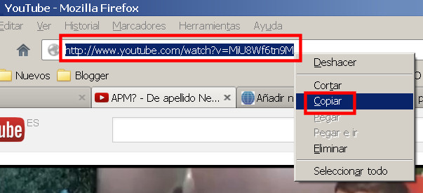 Primero copiamos la dirección o URL del vídeo que queremos bajar de Youtube.