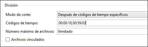 Este corte sirve para hacer cortes recurrentes con un valor de tiempo. Así que si especificamos 1 minuto en las opciones, realizará cortes cada minuto y por cada uno de ellos, un nuevo fichero de esa duración. Ejemplo: si tenemos un fichero que dura 45 minutos y especificamos 00:15:00 en las opciones, realizará cortes cada quince minutos, y en un fichero de 45 minutos lograremos tres ficheros de quince minutos cada uno (15×3=45).