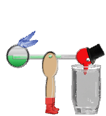 – Cloruro de metileno en el abdomen. Este elemento es un disolvente industrial de pintura (un componente que se disuelve fácilmente en el cloruro de metileno es la cafeína, por lo que podemos emplearlo para descafeinar cosas). El cloruro de metileno ayuda a que el pájaro bebedor funcione, debido a que se evapora con facilidad (hierve a 40 ºC).
