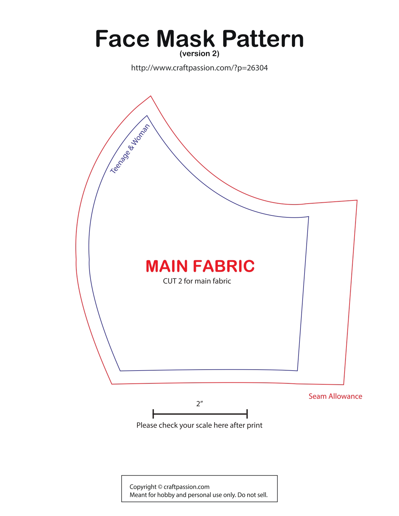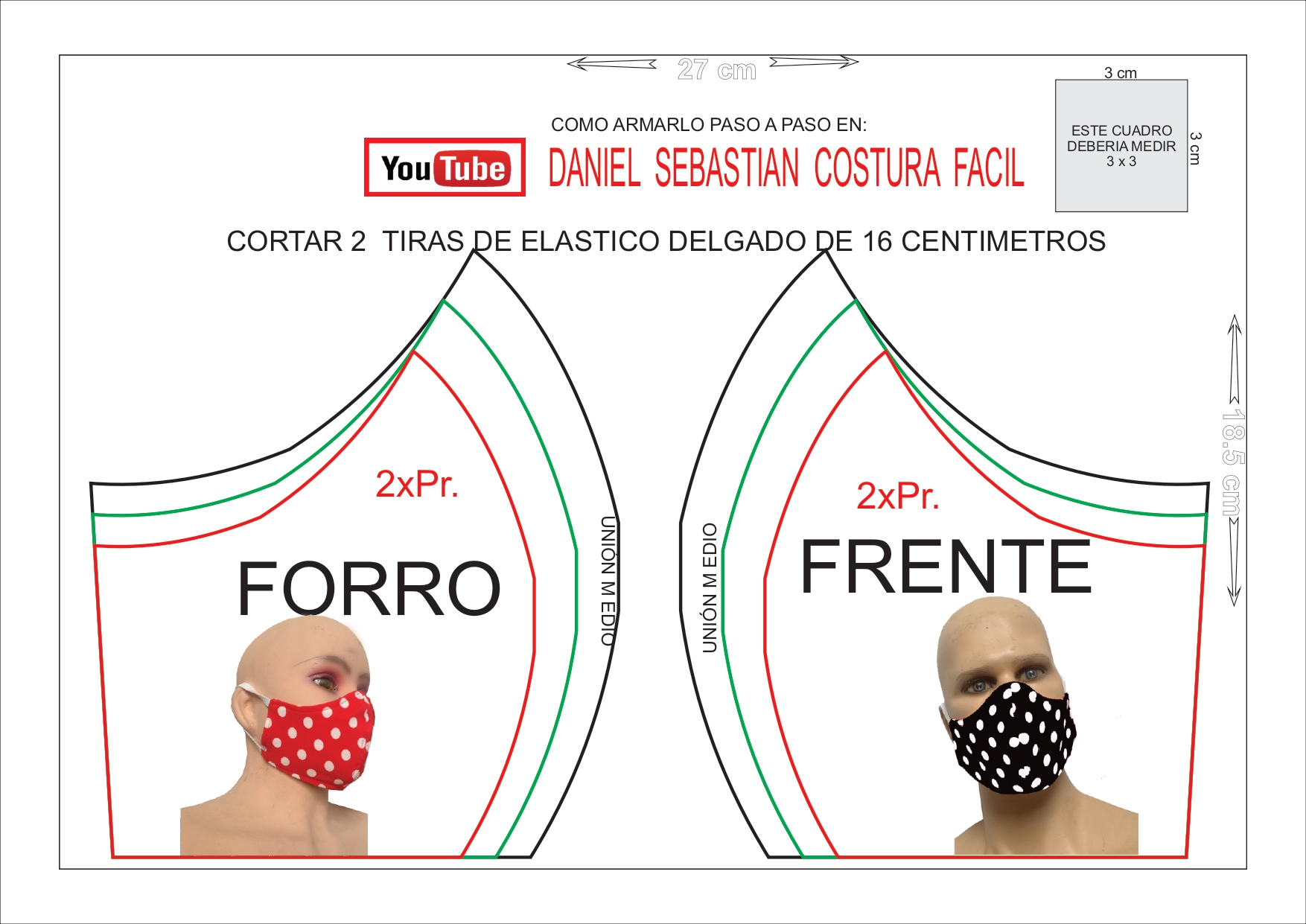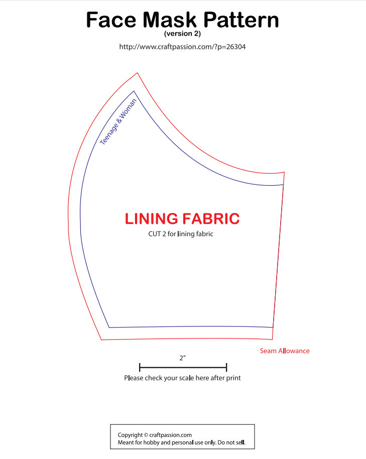 Mascarilla para mujer joven: Puedes descargar el patrón aquí en PDF, aquí en DOC, aquí en JPG (1 y 2) y aquí en SVG.