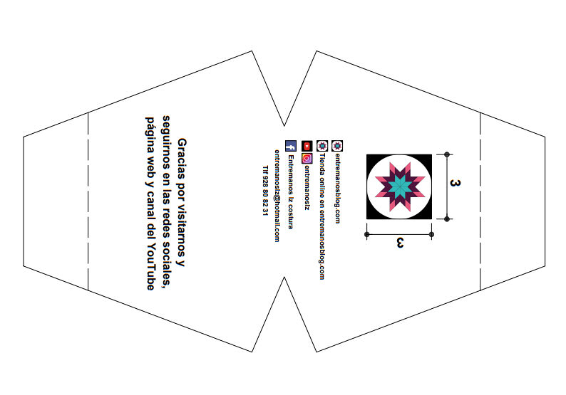 Mascarilla para niños de 7 a 12 años: Puedes descargar el patrón aquí en PDF, aquí en DOC, aquí en JPG (1 y 2) y aquí en SVG.