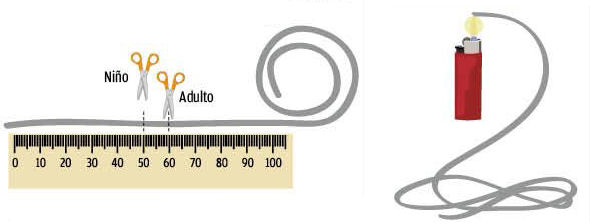 Por ejemplo, si realizamos 25 tapabocas de tamaño niño, tendremos que cortar unos 50 trozos de elástico de unos 60-50 cm. aproximadamente. Para evitar que los extremos del elástico, cordel o resorte se deshilachen, podemos quemarlos un poco.