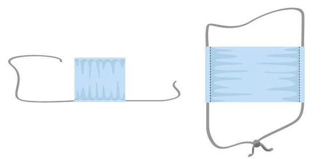 Cosemos las tiras al tapabocas asegurándonos que tendrán la medida correcta respecto a nuestras orejas. El cubrebocas debe quedar bien ajustado para que no existan huecos, pero no en exceso para que ni siquiera podamos ponérnoslo.