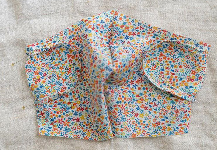 Finalmente cosemos las tiras. Para ello, doblamos las tiras por la mitad (en sentido vertical) y las cosemos para cerrarlas en forma de tubo. Luego cosemos los extremos a los lados del cuerpo del tapabocas.
