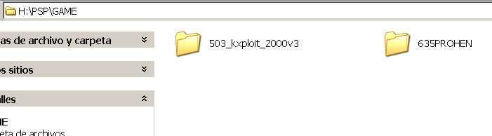 Tan sólo necesitamos instalar estas dos carpetas (503_kxploit_2000v3 y 635PROHEN) en la ruta PSP/GAME de nuestra PSP. No necesitamos las dos exactamente, sino que dependiendo de nuestro modelo de PSP, necesitaremos un parche u otro, así que podemos dejar las dos y probar cuál nos funciona. Podéis bajar las dos carpetas en un fichero comprimido AQUÍ.