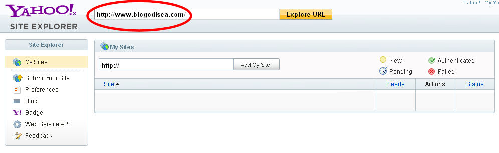Una es Yahoo Site Explorer. Entramos en la página Site Explorer de Yahoo. Podemos identificarnos tanto con alguna cuenta de correo de Yahoo, como emplear nuestras cuentas de Facebook o Google para hacerlo.
