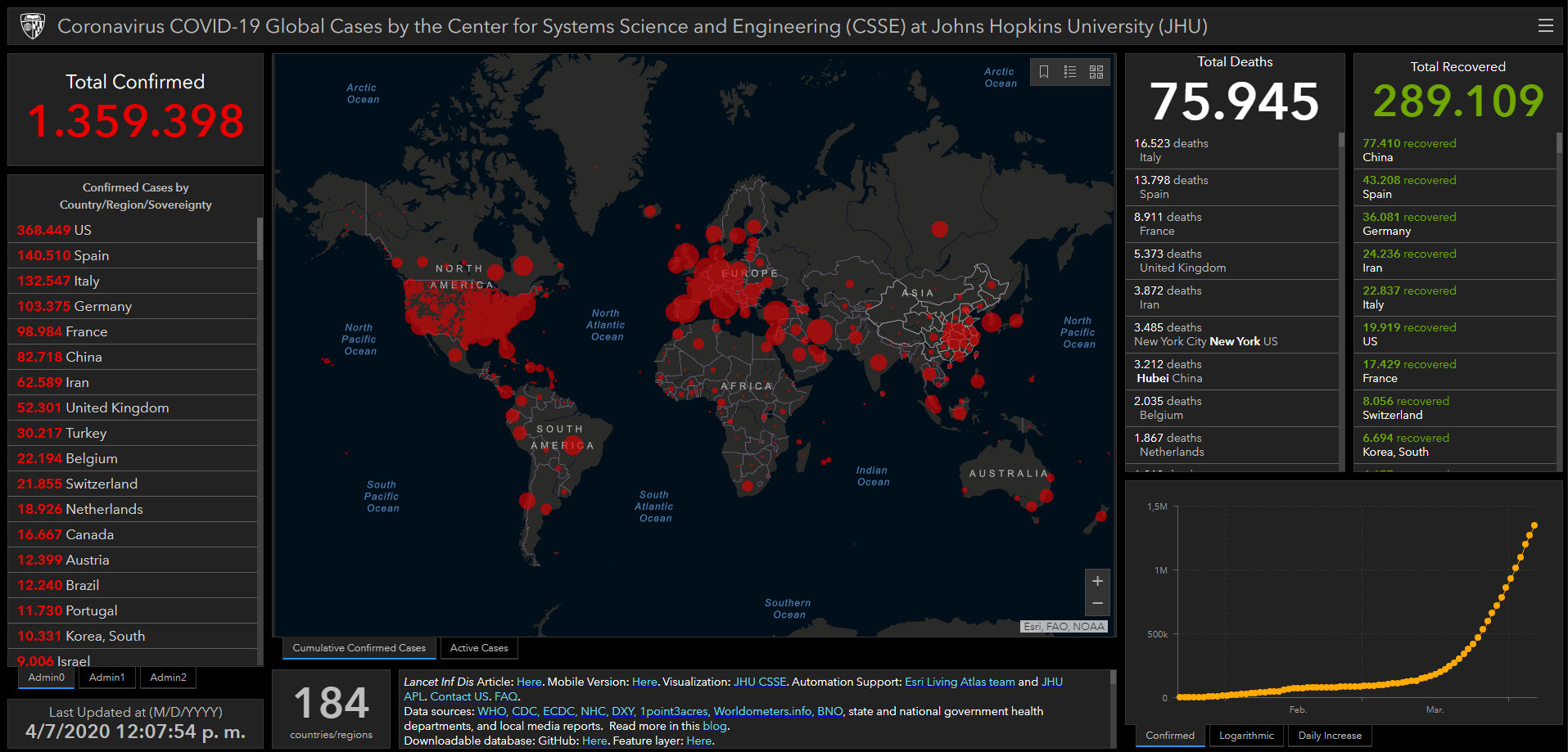 Analicemos las estadísticas de la pandemia que está causando el coronavirus en todo el mundo para hoy, día 7 de abril. Consultamos el mapa global, con datos de todos los países, personas fallecidas y recuperadas por la enfermedad COVID-19.