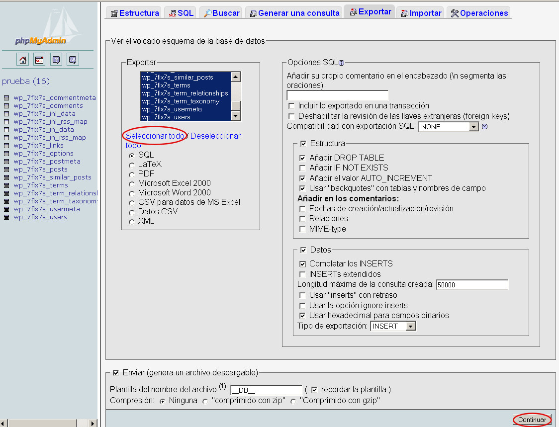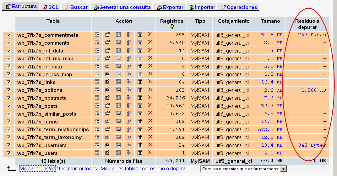 Otra sospecha recayó en el peso de la base de datos, que quizás ha crecido un poco cada vez más (ahora va por los 67 megas). La verdad que también ha sido la primera vez que no pude exportar la base de datos entera, sino que tuve que hacerlo de manera separada por tablas, de modo que no pesara mucho cada grupo.