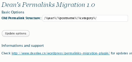 Para no perder la indexación de Google y que los enlaces no se rompan, he empleado el plugin Dean’s Permalinks Migration, que redirige las entradas con la estructura antigua, encaminándolas a las entradas correctas. De esta manera, si existe algún enlace exterior (que actualmente estará mal), el plugin se encargará de corregirlo. Google tardará más o menos un mes en re-indexar todo el blog correctamente y deberé tener el plugin siempre instalado para que no se rompan los enlaces externos que haya recibido el blog en sus dos años y medio de vida.