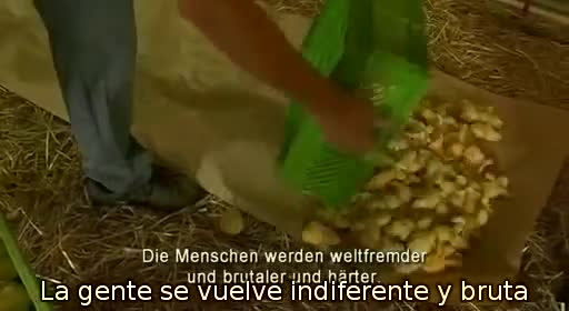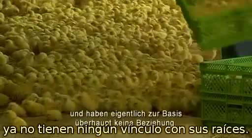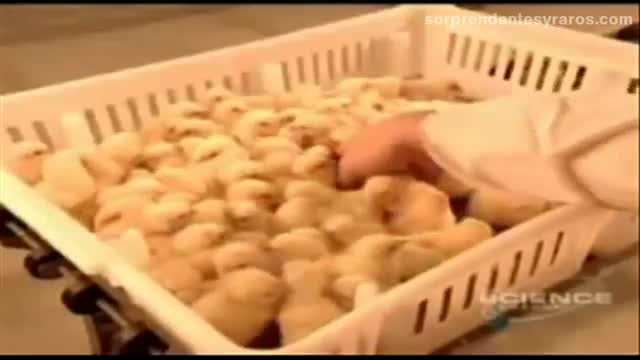 En este otro vídeo de más duración (15 min.), se puede ver el proceso de incubación, cría y despiece de los pollos en una fábrica austriaca. Producen 400.000 pollos semanalmente como quien fabrica clavos. Cada incubadora calienta artificialmente 57.600 huevos a 37 ºC y los va girando cada poco tiempo para evitar que la yema se pegue a la membrana. Es asombrosa la manipulación de pollitos que se hace, todo muy mecanizado, y ver las condiciones de aglomeramiento en las que nacen.