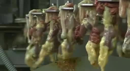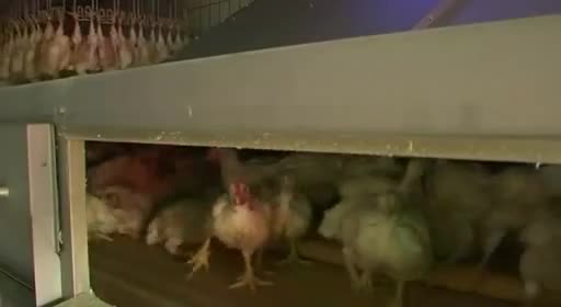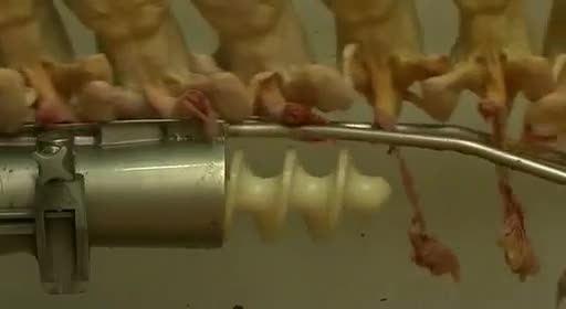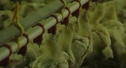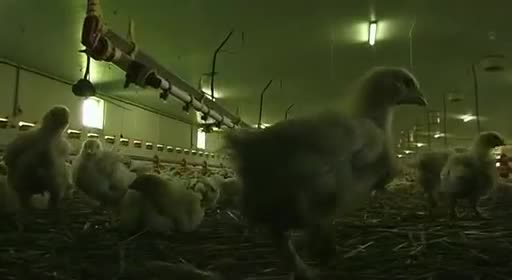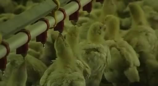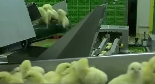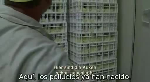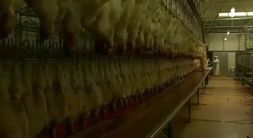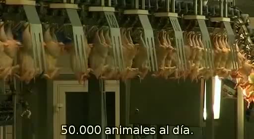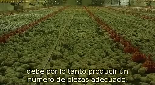 Es horrible saber que nunca verán a su madre ni vivirán sus primeras semanas con ella, o el poco cuidado con que las cintas transportadoras y separadores los tratan, como simples trozos de carne (nunca mejor dicho). El ciclo de cría dura ocho semanas, y en las fábricas de engorde todo se controla con ordenador: ventilación, calefacción o consumo de agua. Las secuencias de los pollos hacinados en las salas de engorde son impresionantes. Saber que has nacido para que en ocho semanas te maten, y entre medias no puedas disfrutar de nada en la vida es muy triste, estos pollos no sentirán ni los rayos del sol.