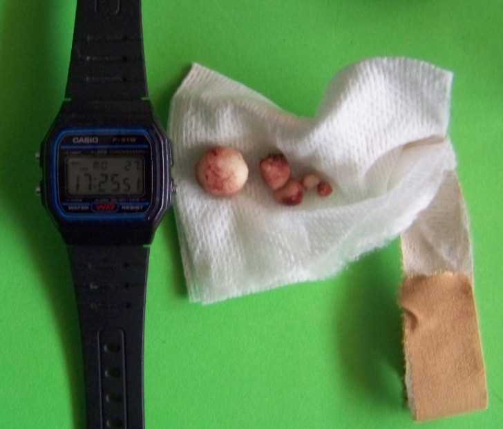 Esta es la foto de algunas piedras, las otras se las quedó la veterinaria.