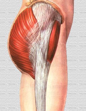 A la izquierda, el músculo glúteo mayor o máximo. A la derecha, el músculo cuádriceps femoral o crural.