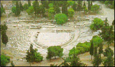 Se creó la orquesta, que sería el pilar del teatro, y allí se situó el coro al lado de aquel altar en el que tiempo atrás se sacrificaba un carnero en honor a Dioniso, que sigue exhibiéndose de forma simbólica en el centro de la orquesta.