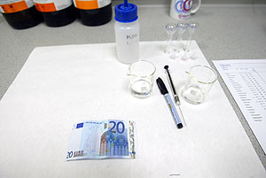 Según los análisis del Instituto de Investigación Biomédica y Farmaceútica de Nuremberg, resulta que los billetes españoles serían los que más cocaína tendrían, comparándolos con los billetes de otros países europeos, como por ejemplo, hasta cincuenta veces más que los de Alemania.