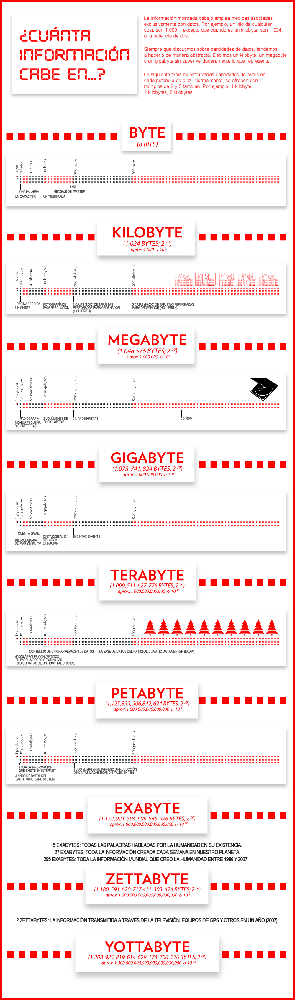 En el gráfico de abajo podemos ver cuántos datos caben en diferentes unidades de almacenamiento de información.