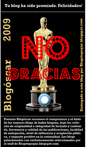 Ya sospeché algo cuando al colocarlo en la sidebar, al pinchar sobre la imagen del Óscar me llevaba a un blog reaccionario y de opiniones fanáticas que nadatiene que ver con mi forma de pensar,