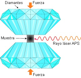 Usando dispositivos como prensas de yunque de diamante, los científicos pueden producir temperaturas y presiones más altas que las halladas en el centro de la Tierra. La técnica implica colocar una muestra de material entre dos piezas de diamante para luego comprimirla. Puesto que el diamante es transparente a la luz, pueden dirigirse haces de láser contra el material en la prensa cuando se halla bajo alta presión para elevar su temperatura.