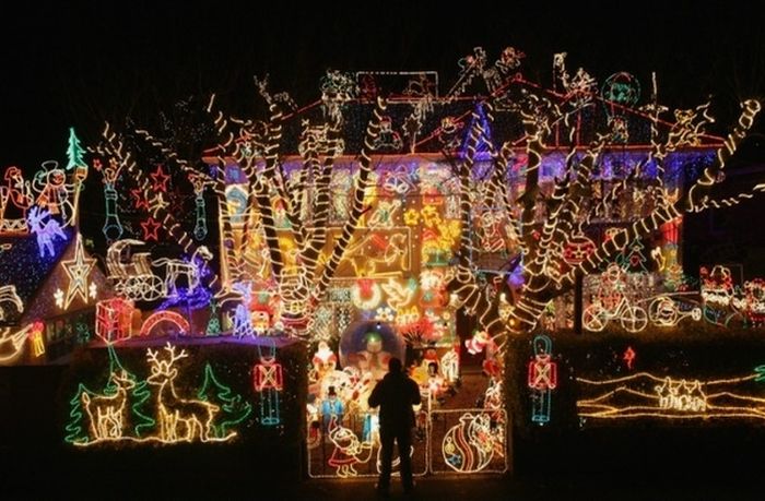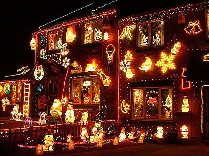 Los dueños de estas casas no saben dónde está el límite. Se ponen a colgar adornos, luces y ornamentos de Navidad en las fachadas y porches de sus casas, y no pueden parar. Algunas imágenes de casas con hiperdecoración de Navidad.