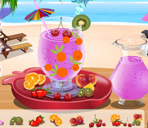 En este juego podremos decorar un vaso de zumo de jugo de frutas que tenemos que servir en un entorno de playa. Podremos cambiar la clase de jugo, la decoración del vaso, la bandeja, las frutas que adornarán por la parte de arriba, el borde del vaso y la bandeja, las pajitas, canutos, sombrillas y hasta el fondo del escenario.