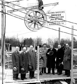 Este puente colgante unía la ciudad de Tacoma con la península de Kitsap y estaba situado en Puget Sound, en el estrecho de Tacoma Narrows (Washington, Estados Unidos). Se abrió al público el 1 de julio de 1940 y se derrumbó violentamente a los cuatro meses, el 7 de noviembre posterior. En la época que fue construido, era el tercer puente colgante más grande del mundo en términos de longitud, por detrás del Golden Gate y el Puente George Washington.