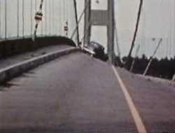 Este impresionante vídeo nos demuestra la fuerza del viento enfrentándose a una precaria tecnología en la construcción de puentes. El antiguo puente Tacoma Narrows se desplomó el 7 de noviembre de 1940 debido a la resonancia generada por las ráfagas de viento que entraron en correspondencia con las frecuencias naturales del puente.
