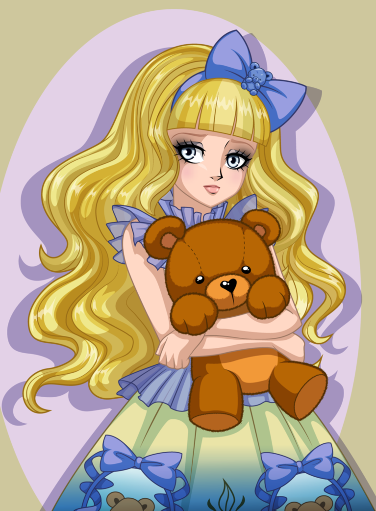 Una hermosa imagen de la Ever After High Blondie Lockes para pintar y colorear como queramos. En este caso tenemos el dibujo original en color para que sepamos los colores que lleva el dibujo, aunque siempre podemos poner los colores que queramos nosotros.