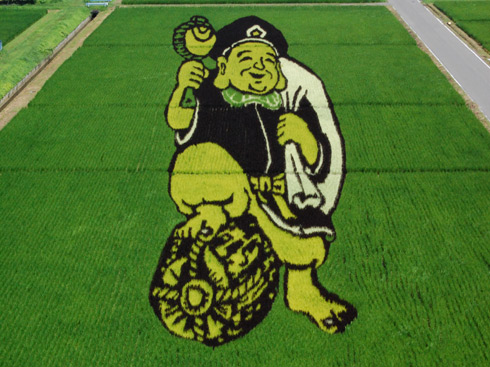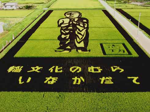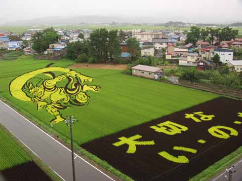 Más imágenes de campos de arroz, donde figuran entre ellos, varios de seres de la mitología japonesa.
