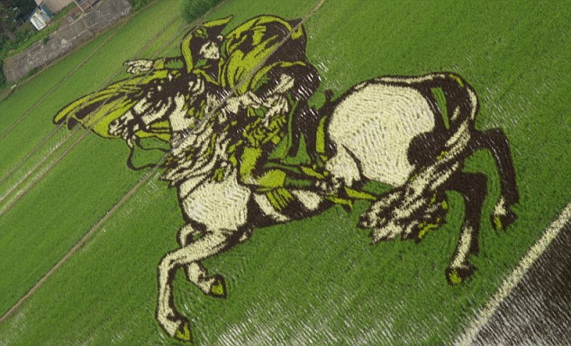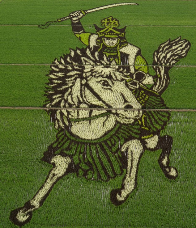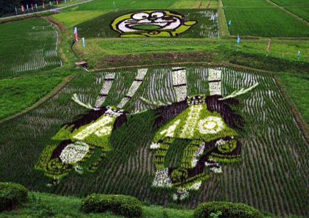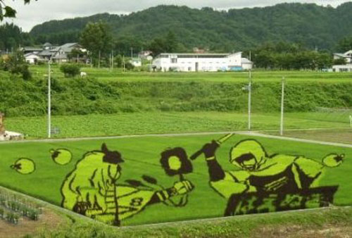 Y no son los que hacían los extraterrestres en los campos ingleses, sino que la mano y el ingenio del hombre ha creado estas ilustraciones usando diferentes clases de plantas de arroz. En estos arrozales japoneses, se seleccionan las plantas por su color y se siembran de manera estratégica para formar bonitos dibujos que pueden verse desde el aire.