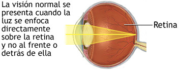 Estas alteraciones se pueden solucionar con el empleo de gafas o lentes de contacto, así como operaciones de cirugía refractiva. La visión normal y saludable se produce cuando la luz es enfocada directamente sobre la retina y no delante ni detrás de ella. Una persona que tenga la vista normal, podrá ver objetos perfectamente estando cerca o lejos.