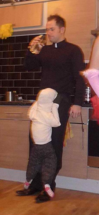 jajaja entre el cura, el tío metido en la jaula y el pequeño Hitler, como me he reído!!