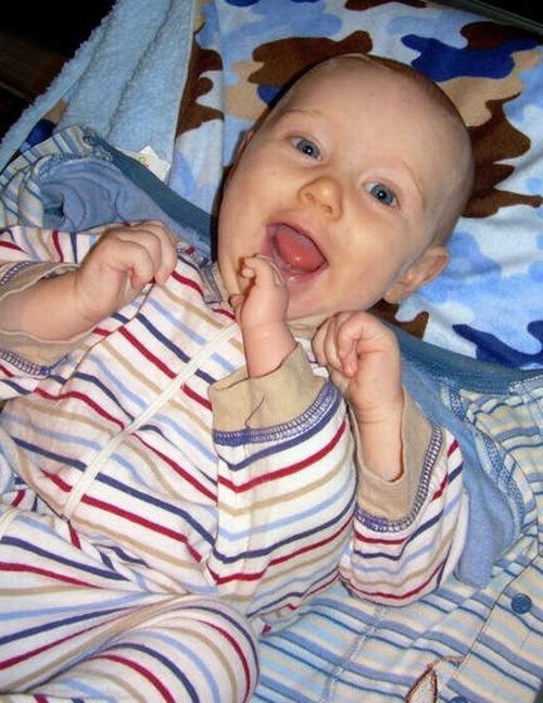 El niño, si que está disfrutando, tiene dos manos más para chupar.