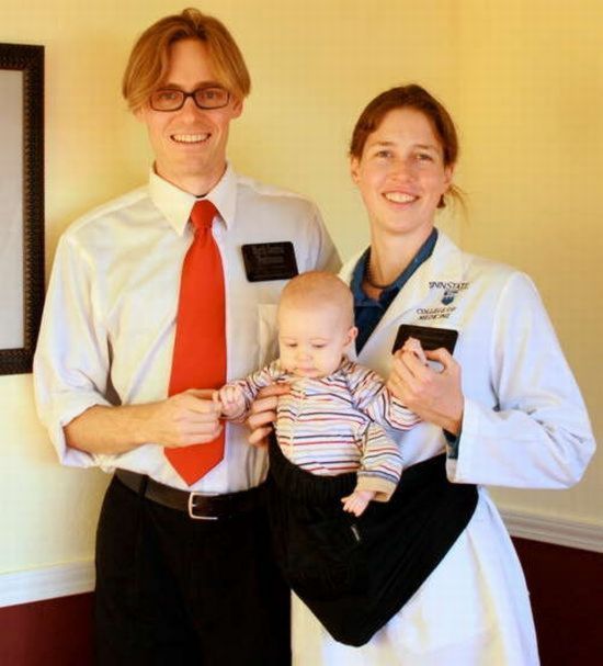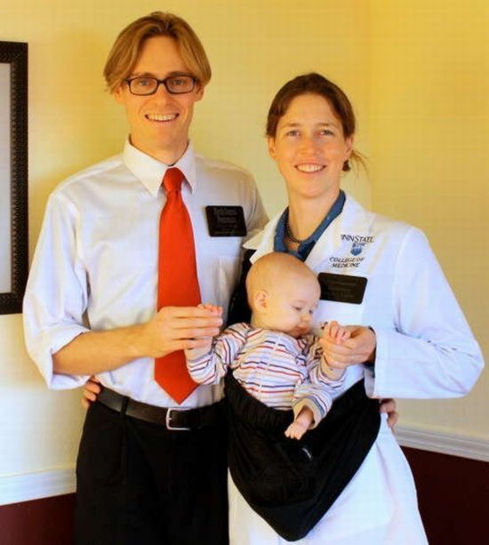 Mirad qué contentos están los padres con su hijo cuatribrazo.