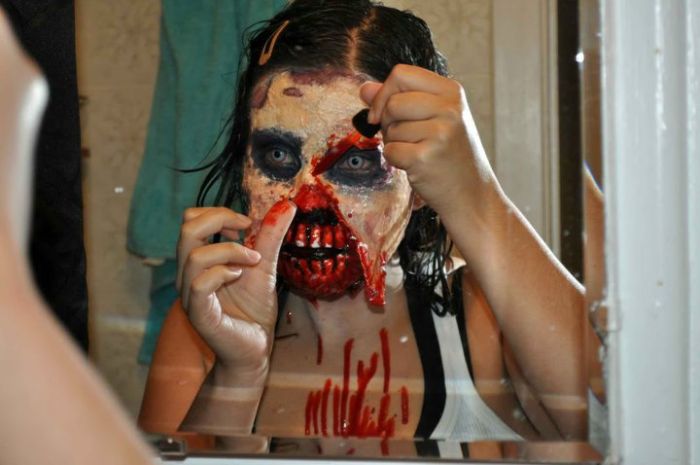Para que cojáis más ideas de trajes para Halloween, aquí os mostramos uno que no necesita mucho trabajo y tiene un resultado bastante asqueroso y creíble. Con una máscara adecuada y un maquillaje sangriento, podemos crear un zombie chupacraneos con el que aterrorizaréis a los demás.