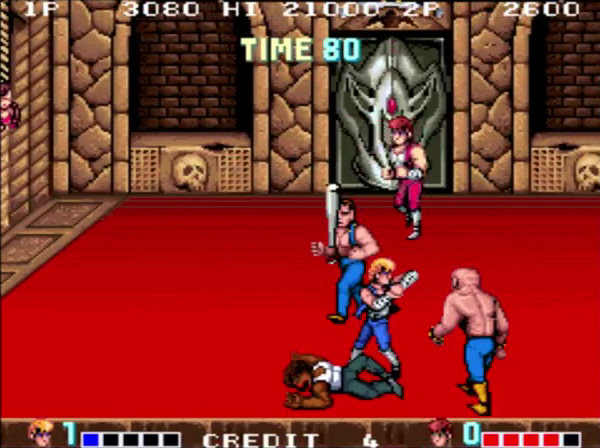 Double Dragon es comúnmente conocido como el primer beat-em-up de desplazamiento lateral. No lo es realmente, ya que hubo algunos juegos anteriores que inauguraron este sistema, pero seguro que ha sido el más conocido durante mucho tiempo.