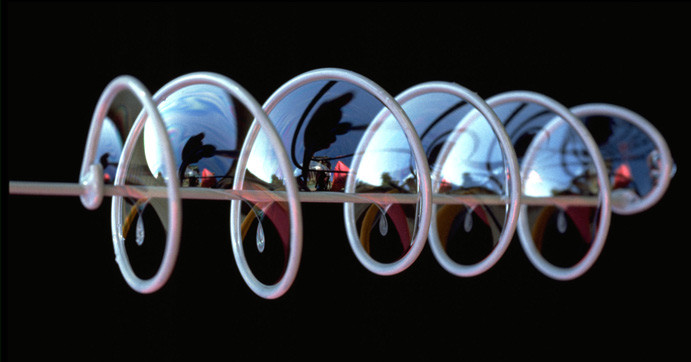 Recordó entonces los experimentos del físico belga Joseph Plateau en el siglo XIX, quien trabajó con películas de jabón para obtener superficies mínimas. El proceso es muy sencillo: se toma uno o varios trozos de alambre de borde tan sinuoso como se quiera y luego se «cierran», es decir, se unen sus puntos de inicio y final. Posteriormente, se los sumerge en una solución jabonosa y se los retira suavemente.