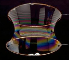 Al sacarlos, la forma mínima y curvada «hacia afuera» será automáticamente producida por la naturaleza (una presentación interactiva de este experimento aparece en el video «Soap Film Demonstrations» en YouTube).