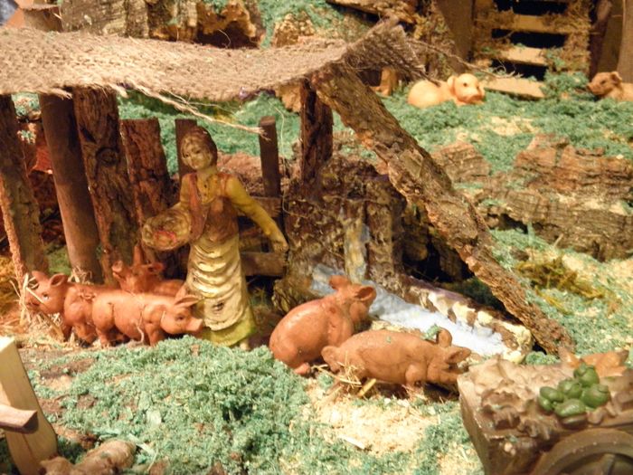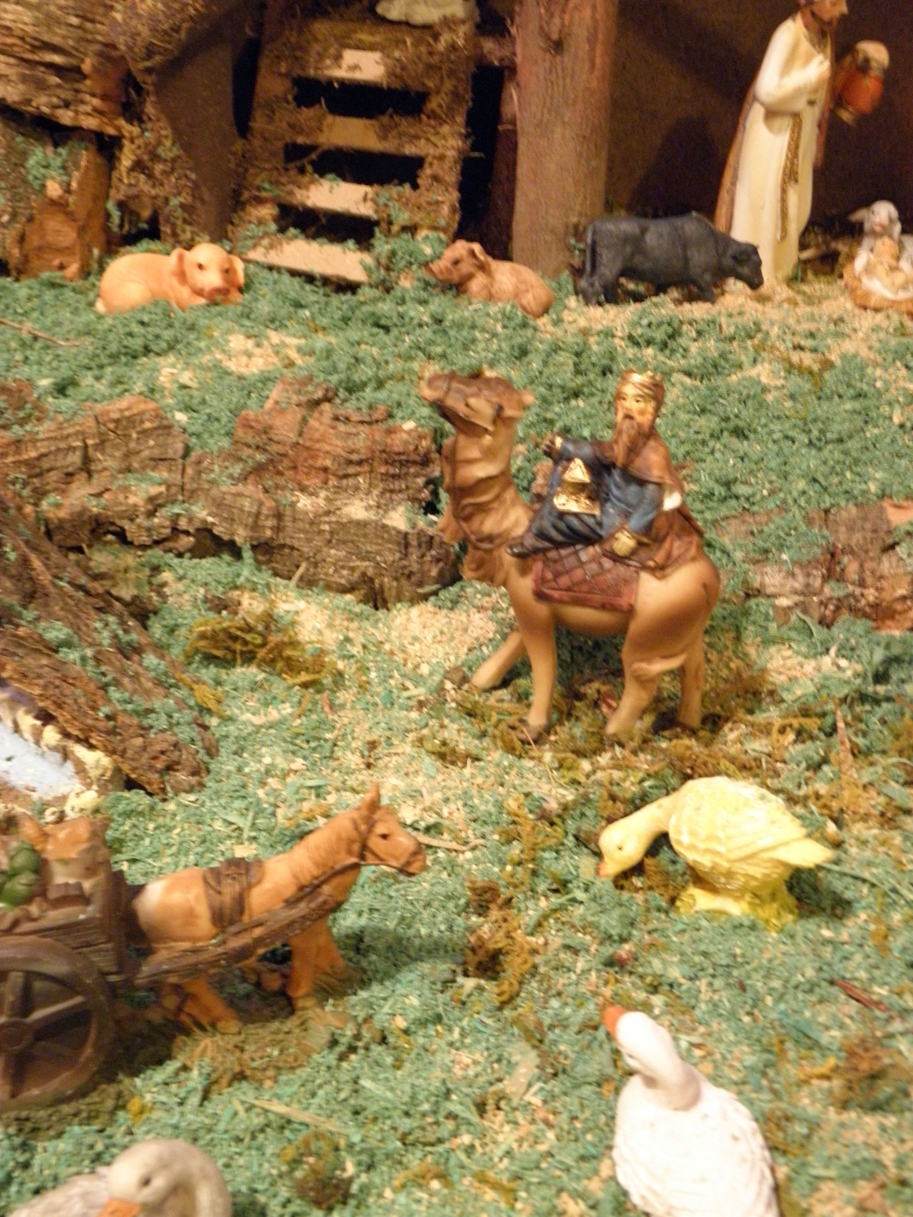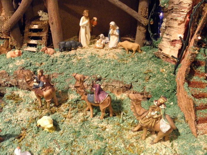 En mi casa soliamos poner naciemientos, como se le llama en Mexico, al principio muy grandes y poco a poco fueron siendo cada vez mas raquiticos hasta que dejamos de montarlos. Y como dices uno de los problemas era la proporcion de las figuritas. teniamos por ejemplo la virgen Maria de 5 centimetros y el nino Dios de 20 centimetros XD pobre mujer!