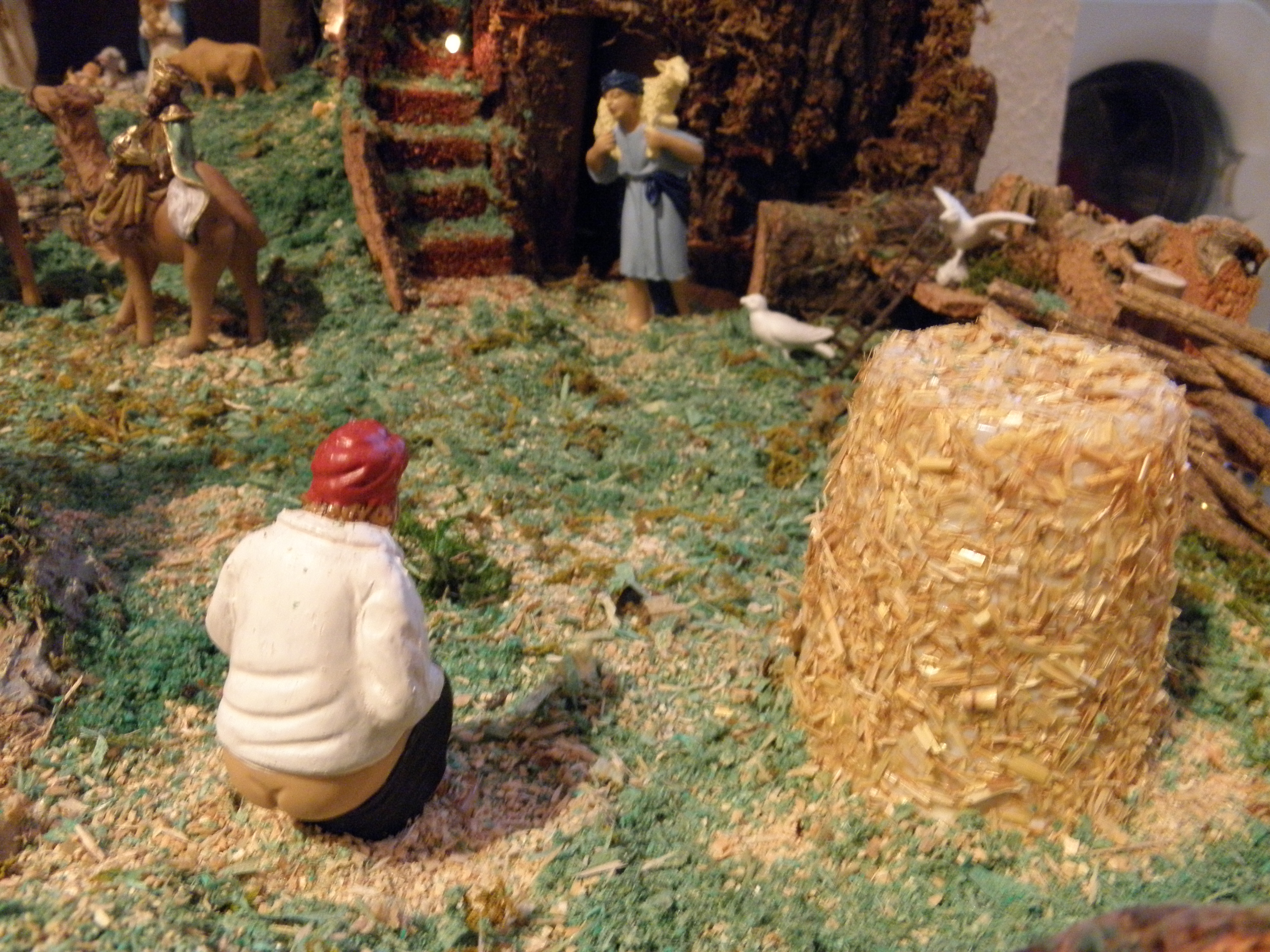 Qué risa con lo del tamaño Maesin, jaja. El de la tercera foto efectivamente está haciendo de vientre, y es una pieza llamada «caganer», típica de algunas zonas de España.
