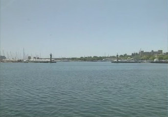 Puede que estuviera situada junto al puerto, pero esto ha sido discutido, y es más probable que estuviera alejado del mismo, junto al santuario del dios Helios.