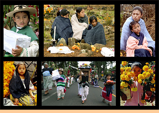 Los velorios se llenan de velas encendidas porque ellos piensan que su luz ayudará a las almas a encontrar su camino. Se reza durante toda la noche y se invita a los presentes a café, mezcal y cigarros. El fallecimiento de un niño es motivo de júbilo y en algunos pueblos se baila toda la noche, pues se cree que su alma ha ido directamente al cielo.