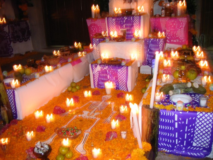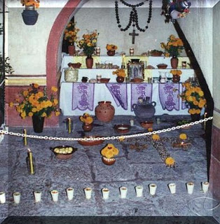 En los altares de las casas, engalanados con flores, se colocan los manjares y las velas, una por cada infante muerto que la familia todavía recuerde. Por eso el 1 de noviembre se denomina también «día de los angelitos«. En muchas regiones la gente forma un sendero con pétalos de cempaxóchitl (clavel chino), desde el altar hasta la calle, para que las almas puedan encontrar el camino.
