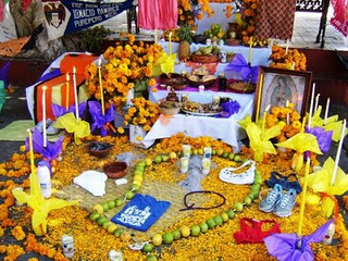La ofrenda, en sí misma, es una clase de escenografía en la que participan nuestros muertos que vienen a beber, comer, descansar y convivir con sus familiares y allegados.
