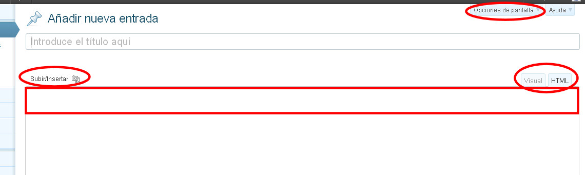 Cuando ocurre este error, desaparece la barra de editar el texto, no se pueden subir imágenes, las opciones de VISUAL/HTML tampoco funcionan, ni se despliegan las Opciones de pantalla.